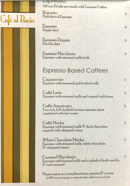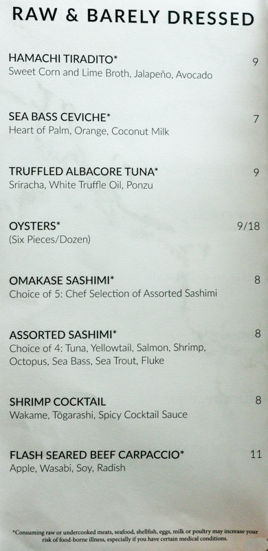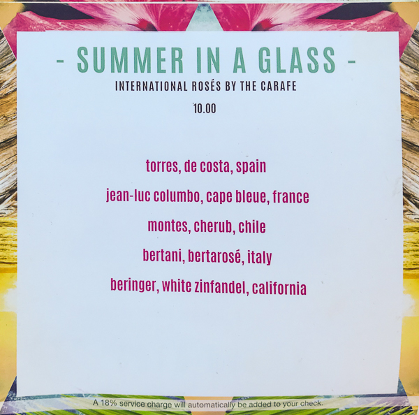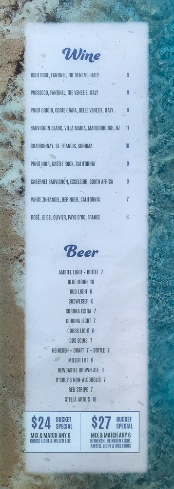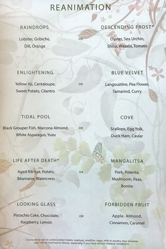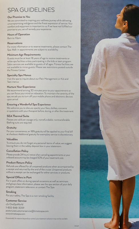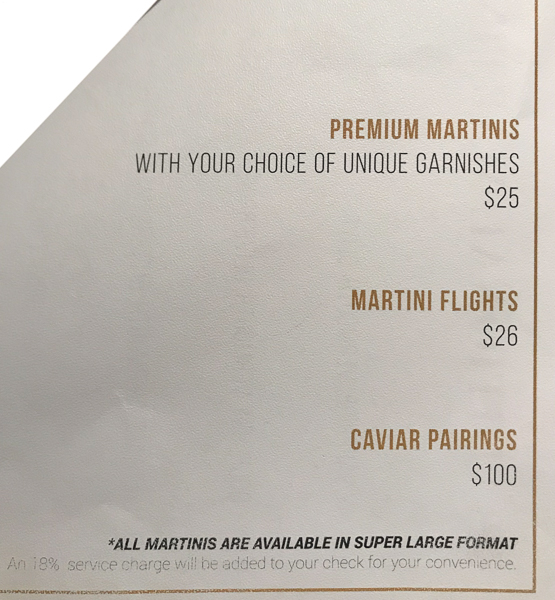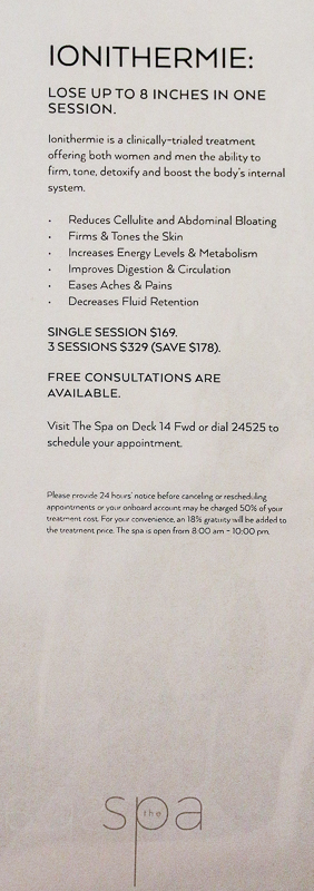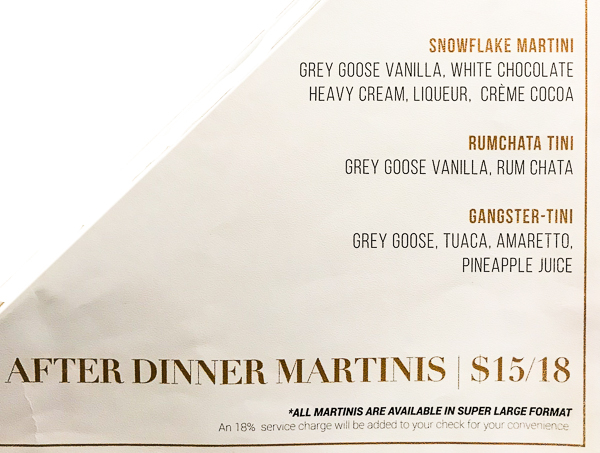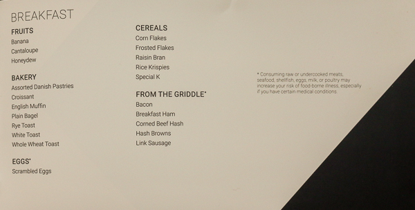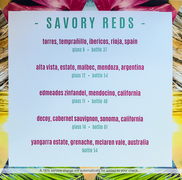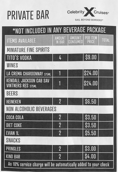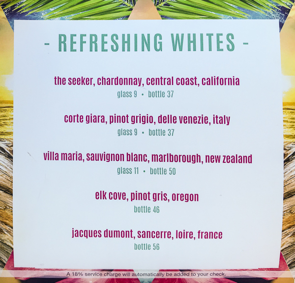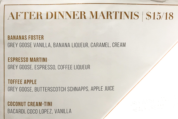 For some reason, when I asked for the menu to take a photo of after I ordered and returned the menu to the waiter, he gave me day 7 rather than day 1. I never noticed it until I was putting this page together. As is normally the case on Celebrity ships, they have prime rib on the first day.