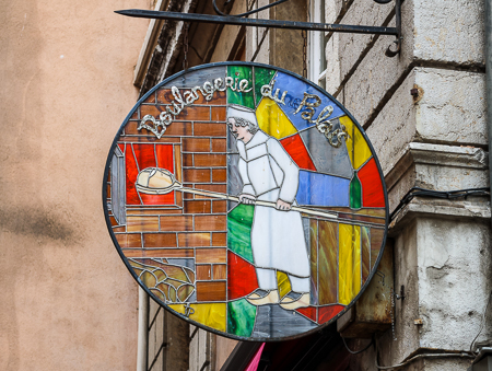 Christêle told us that we should go to a bakery and try one of their pralines. They are nothing like the New Orleans pralines that I am very fond of. She pointed out one that she recommended. I liked the marker on the building.