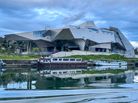 The Delling left Vienne at 5:00 AM. It would only be a 3.5-hour trip to Lyon, our last port on the cruise. As we cruised into Lyon, we passed by the Museum of Confluences. The science center and anthropology museum opened in 2014. It is an unusual looking building. Certaintly different from the other architecture we would see in Lyon.
