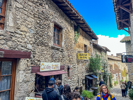 We wanted to take this tour to see a town that hasn’t changed much since the 1500’s. It is recognized as Les Plus Beaux Villages de France, meaning the most beautiful villages of France. It was only a 45-minute bus ride to the town. Sylvie told us the story of how the town was booming in the 18th century. However, in the 19th century roads and railroads were rerouted resulting in the population dropping from 1,500 residents to just 12. Everything turned around in the early 20th century with the town being restored and becoming a popular tourist attraction.