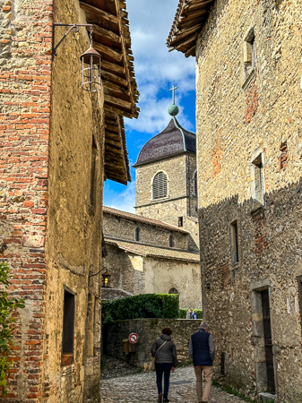 We arrived back at the ship at around 12:30 PM. Our next tour was at 2:00 PM, so we would have to rush through lunch. We were taking the optional Timeless Town of Pérouges tour with another excellent guide, Sylvie.