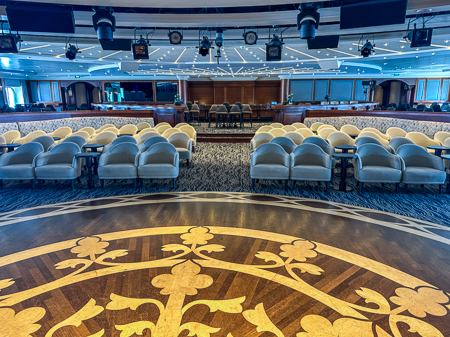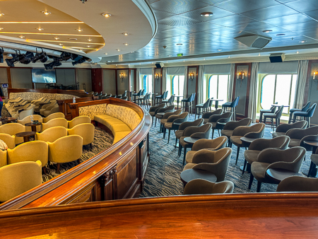 Cabaret lounge – This is the main theater located at the front of the ship on deck 5. This room is the main reason that I prefer not to cruise on this class ship. The room is like a cabaret with most of the seats on level floor. This means that unless you are sitting on the front row, your view will probably be obstructed by someone’s head. I much prefer stadium seating where most seats are on a higher level than the row in front of them. Since I normally like to take photos of shows and performers, it is probably more frustrating for me than most people.