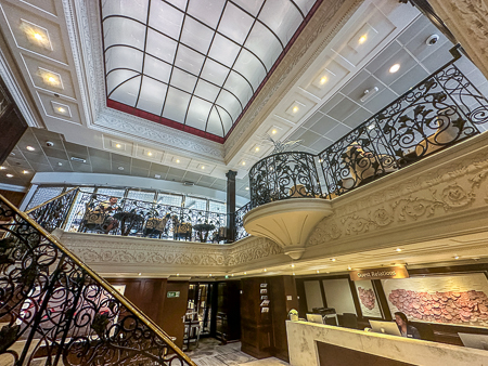 Atrium - This is a very pretty and classic looking area of the ship. All of the previous Rennaisance Cruise Line ships have the same type atrium area with the elegant stairway and ironwork. It is pretty from every angle from both decks four and five.