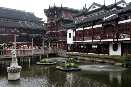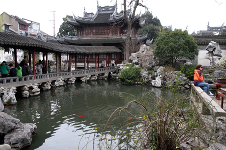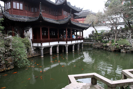 We came to our next tourist attraction which almost adjoined the market, the Yu Garden. This garden was built 400 years ago during the Ming Dynasty. It looked to be quite a place. The architecture and plants combined for a beautiful sight.