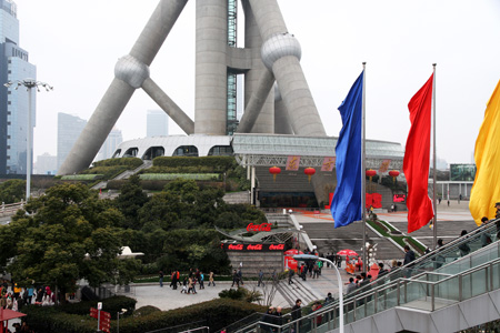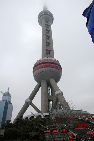 Our last stop of the day was at the Orient Pearl TV Tower. The 1,536 foot tower is currently the world’s fifth tallest TV and radio tower. But I bet it is probably the most recognized one. It was built in 1994. The fog had lifted some and I was able to see all three of the balls on the tower; but not all the way to the top.
