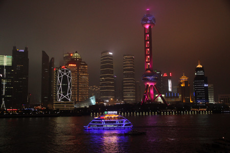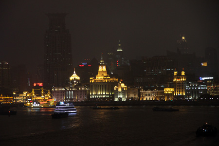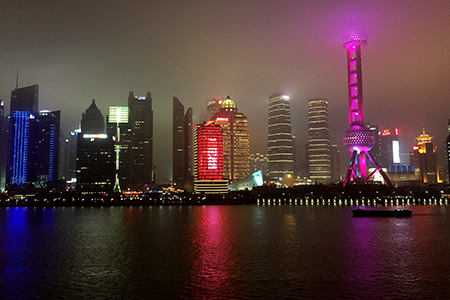After we got back to the ship and had dinner, I went out to the open decks to see if the light show might be better. Unfortunately, it was worse than the first night. The fog was thicker and I couldn’t even see the top of the lowest ball on the Oriental Pearl Tower. What a shame it was that we had come so far and we wouldn’t see the tops of the beautiful skyline, since we were leaving port the next day.