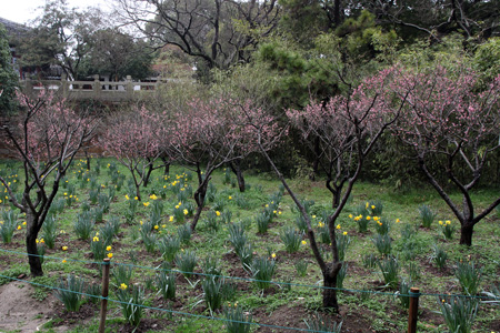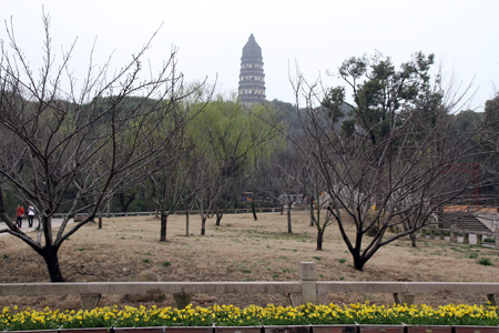 I had thought that the reason we had climbed the hill was to see the pagoda; but the real reason seemed to be to see the lovely grounds. It was especially nice that the plum blossoms were blooming there.
