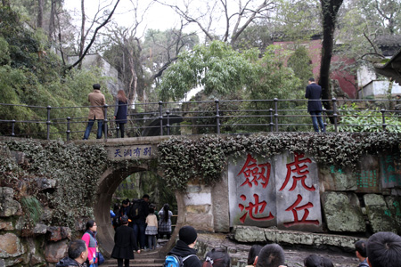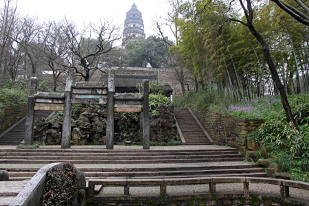Our first destination was the town of Suzhou, an hour and a half drive from Shanghai. It is known for its classical gardens, which are UNESCO World Heritage Sites. But first we were going to visit Suzhou’s Tiger Hill. As we entered Suzhou, we could see our destination, the Pagoda on Tiger Hill. It was way up there, I assumed that there must be a road up the mountain to visit the pagoda. The pagoda looked very old and was leaning. It wasn’t a fancy pagoda, but it had a lot of significance and is the symbol of Suzhou.