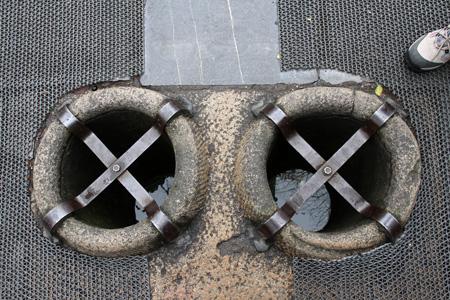 On the walkway over it were a couple of holes that had been partially covered to prevent people from stepping into them. The holes were there to allow buckets to be lowered through to obtain water from below in olden days.