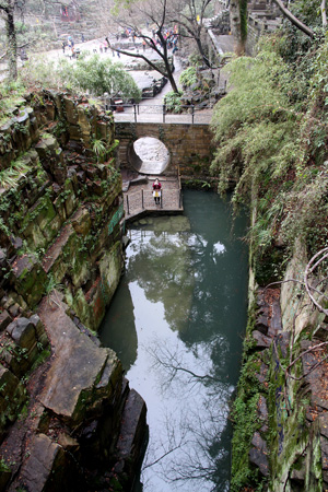 There was a deep chasm not far from the pagoda. It was covered with ferns and moss.