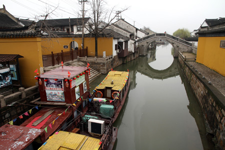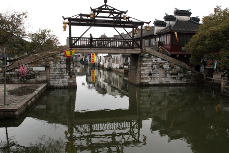 It was only an eleven mile drive to our next stop Tongli Town. It is considered a water town because of its many canals. It is sometimes referred to as the Venice of the East; but so are other places and there is little resemblance to Venice. The town is over 1,000 years old and retains the features of an ancient Chinese town. Cars and vans are not allowed in the town, so we had to buy tickets for the tram that would take us from the parking lot.