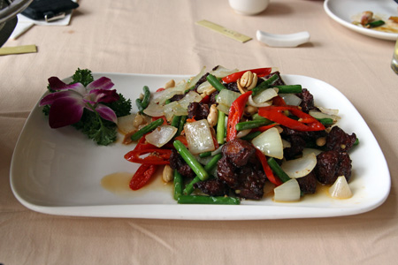 It was lunch time and Kelly took us to the Garden Hotel. It was a very nice modern hotel with a large restaurant. We discussed the menu and we chose a broccoli dish, a pork vegetable combination and a type of dumpling that is the specialty of the house.