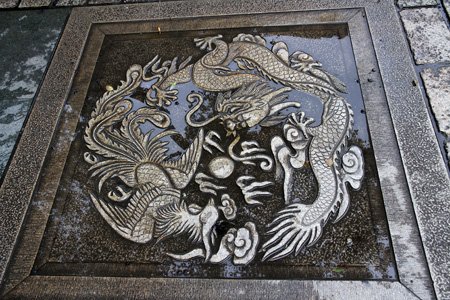 When we left the garden we walked out into a city square with a small stage area. I particularly liked the ground decorations with dragons on them.
