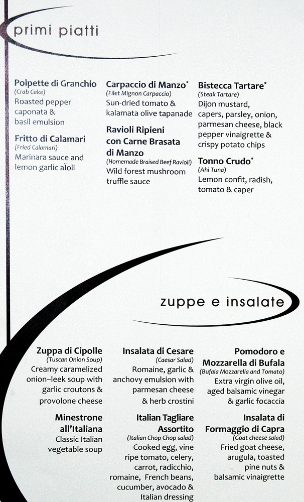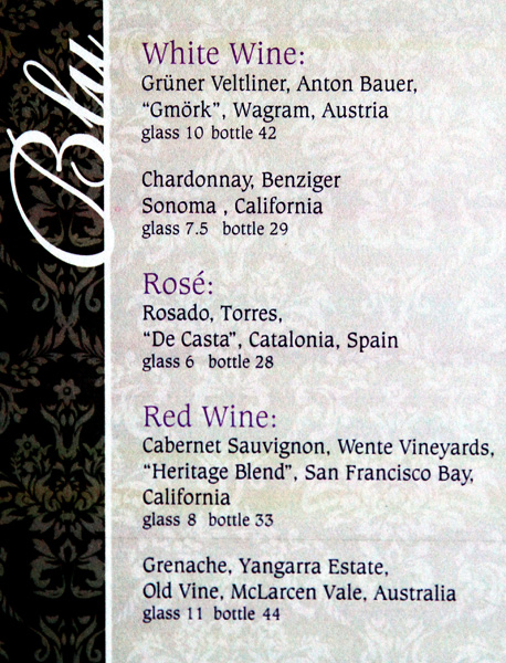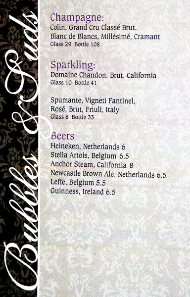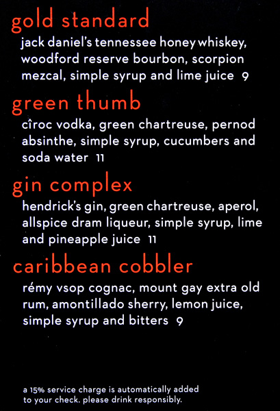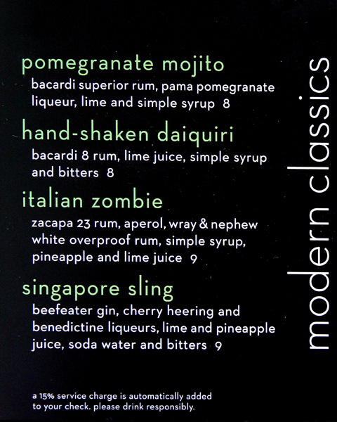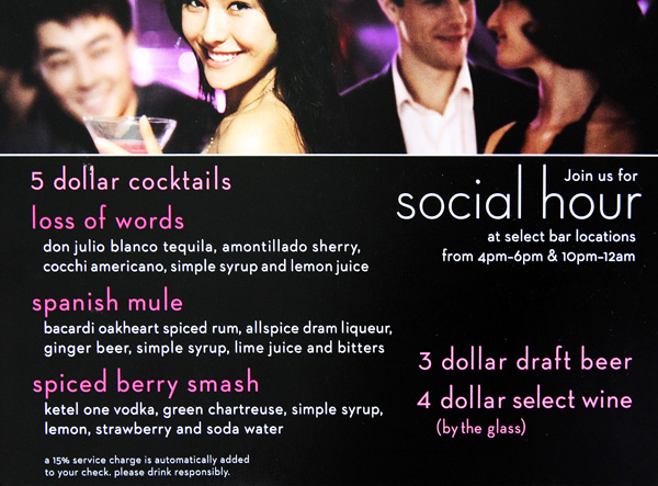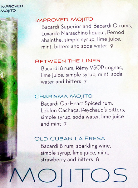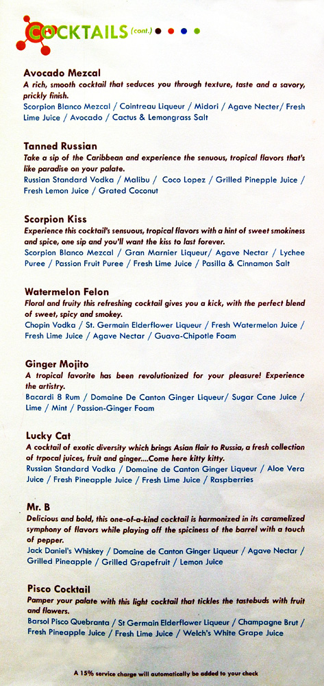 Ensemble Lounge and Specialty Restaurant Bar Menus