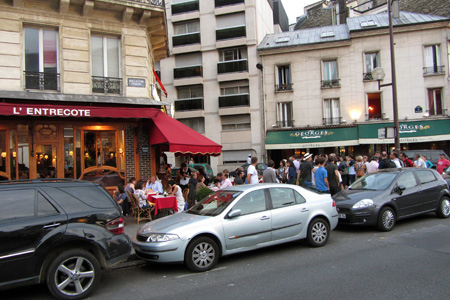 When we returned to the hotel, we went to a local restaurant that was recommended by one of the AMA workers at the reception desk, Le Relais de Venise L'Entrecôte Restaurant. With its opening at 7:00 PM, we thought it would be safe to arrive fifteen minutes early, since most people in Paris seem to eat later than we normally do. However, when we arrived there was already a line of people waiting to enter the restaurant to be seated when it opened. As we waited, the line grew longer. We knew that the restaurant was supposed to be rather unique, but we didn’t realize it was so popular with the locals.