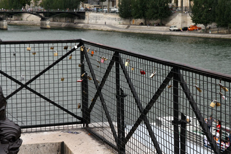 As we passed under the Pont Neuf Bridge, we could see where hundreds of locks had been attached to it to proclaim lovers’ commitments.