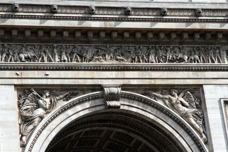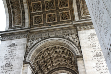After taking Carol back to the hotel, I walked over to the Arc de Triomphe de l'Étoile, the more famous Arc. As I approached it, I was amazed by the amount of detail on it. Normally in photos of the Arc, one just sees the large structure. Up close it is quite beautiful.