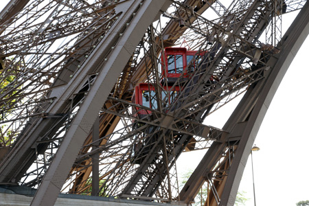 The line to get into the tower was very long. We were glad that we had taken the tour which had an assigned time to take us up the elevator. It is a unique elevator, since it goes up the tower on an angle.