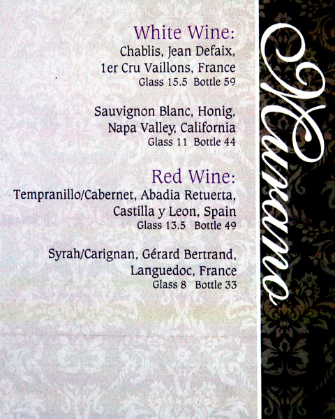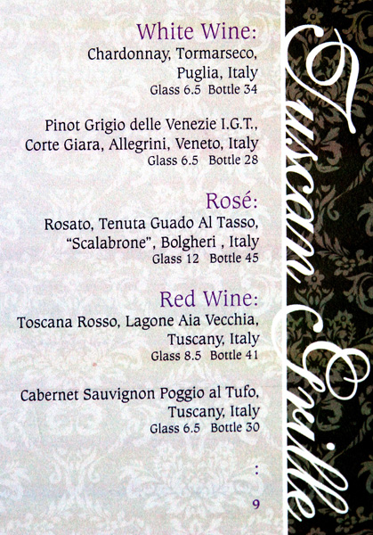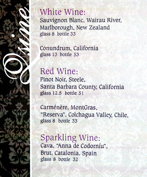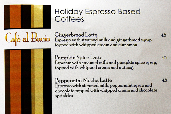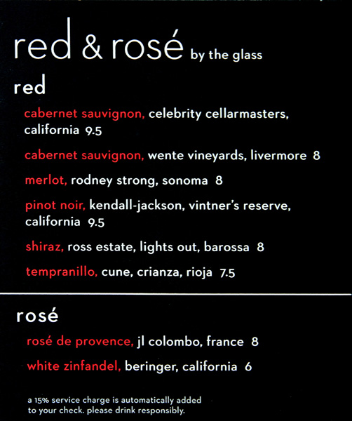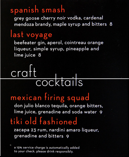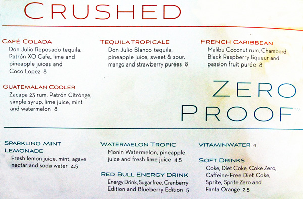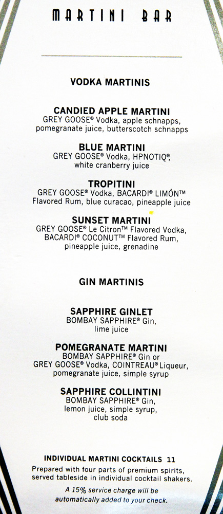 Ensemble Lounge and Specialty Restaurant Bar Menus