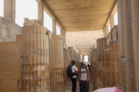 Within sight of the forest is the location of the desert plateau where the Pharaoh Djoser built the first pyramid, which is known as the Step Pyramid. I had seen many pictures of this pyramid, but had not realized that a very modern looking building was also part of the funeral complex. The stones are cut so precisely that there is no space between them and the finish is incredibly smooth. Quite amazing, considering the primitive tools that were used 4,700 years ago to build this structure. It is considered the world’s oldest monument built of stone rather than brick. I was also very impressed with the long hallway of columns that led toward the Step Pyramid. This was an unexpected treat.