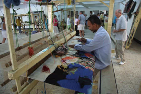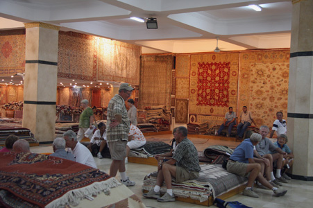 We thought we were now going to get to go to Giza to see the Sphinx and Pyramids; but we had another distraction to go to first, a carpet store. They gave us a short demonstration of how they weaved the carpets and then tried to sell them to us. Since this was also a school, there were children making the carpets as well as master weavers. We had seen a much better demonstration last year in Turkey that had also shown us how they converted the silkworm cocoons into the silk thread, so for us, it was a total waste of an hour.