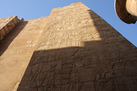 At the entrance to the Temple of Karnak, walking between the rows of ram headed sphinxes as we approached the massive walls just blew me away. I knew that this was the biggest temple we would see, but everything was much bigger than I expected. The hieroglyphics and carvings were everywhere, and they looked so fresh rather than thousands of years old. It was just unbelievable. One benefit of it being late in the day and having the huge walls was that most areas of the temple were shaded. This didn’t help for photos, but it made it more comfortable. We had four new Egyptologists for our group during the cruise. The one we went with was named Robert. He was a very nice young man with a great knowledge of Egypt and a wonderful attitude; but like Nivene, he spent way too much time on details rather than showing us more of the sites.