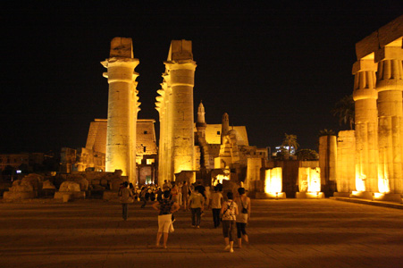 We had a brief orientation program after we boarded the ship and then went to our cabins to get ready for dinner. We had to hurry and eat, because I was going on the Luxor tour that started at 7:15 P.M., followed by the 9:15 P.M. Karnak Sound and Light Show. Even though we needed to hurry, we wanted to make time for a shower. The shower would not maintain a constant temperature. It would get scalding hot, then very cold. It was very difficult to use. I assumed that it was caused by so many people using the showers at the same time. Bad assumption!