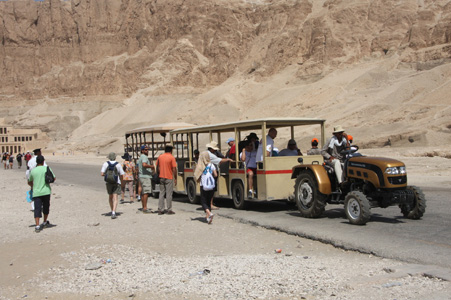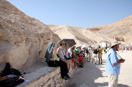 While we were waiting for our group to gather for our return tram ride, we talked to a few people who had gone to KV16 first, the tomb with a lot of steps. Since it had worn them out, they decided not to try either of the other two tombs. We told them that the other two were much easier and more beautiful; but they didn’t have the time or energy to do them. It is a shame they hadn’t looked at their handouts, since it did warn them that KV16 had a lot of steps. They had missed seeing some of the best sites of the trip.