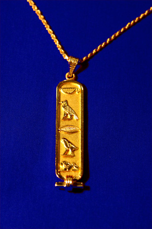 I returned to the hotel to see if Carol wanted to go visit Khan El Khalili Bazaar. We had planned to visit there the first afternoon to order cartouches. A friend had told me about a shop in the bazaar that had very good quality ones at reasonable prices, Gouzlan Jewelers (Link). Cartouches are one of the most popular souvenirs from Egypt. It's a type of pendant worn on a chain and usually has your name in hieroglyphics.
