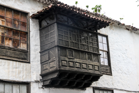 I was too fascinated by these trees. Jamie said that the oldest dragon tree on the island was in this town. It was 1,000 years old. But first we would walk around town a little. It was another lovely place. He pointed out the old wooden balcony on one of the older homes.
