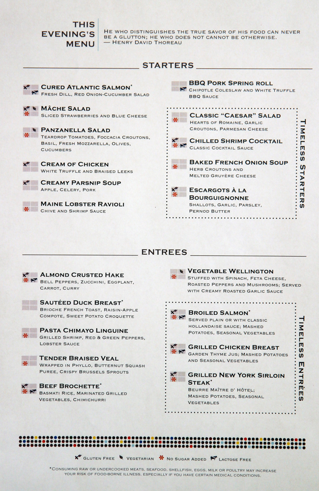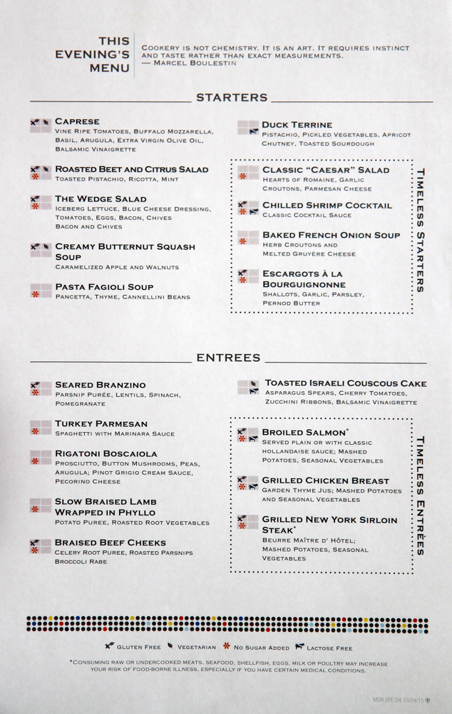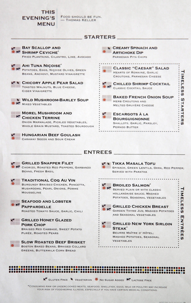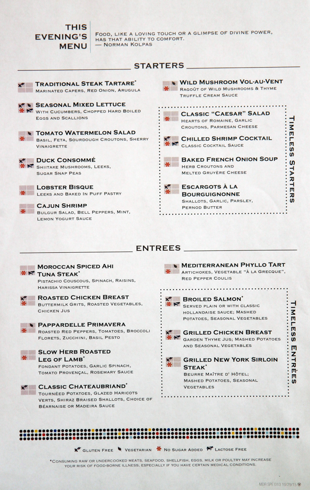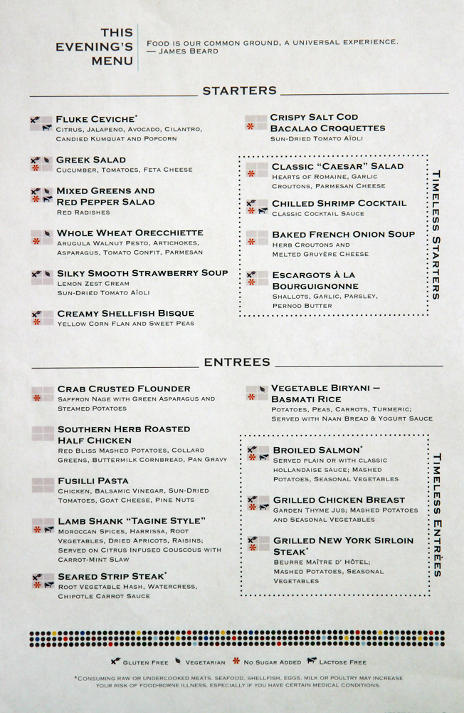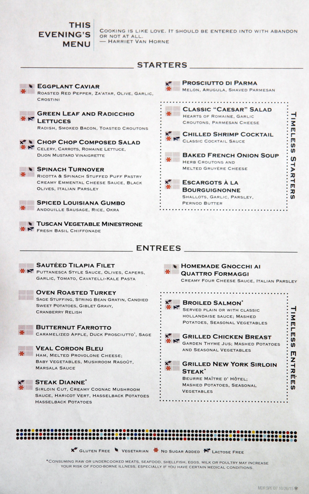Main Dining Room Dinner Menus
