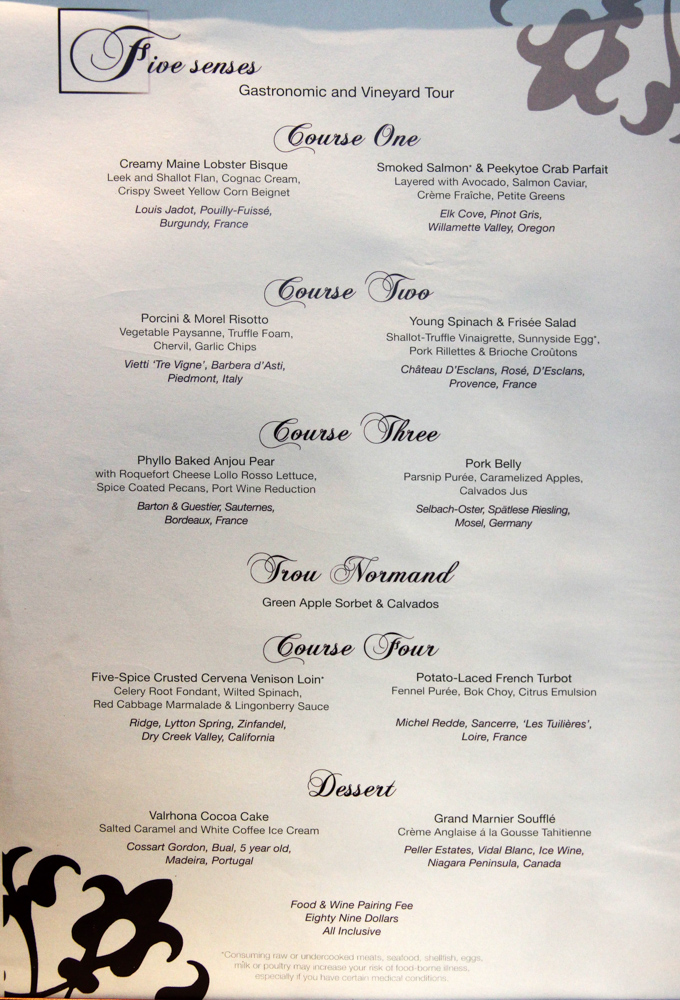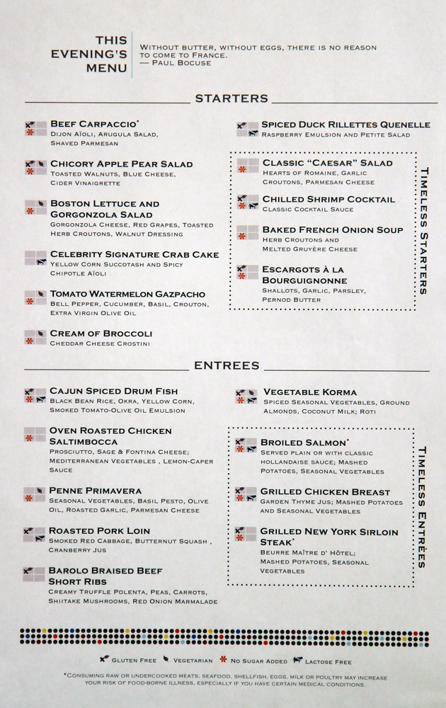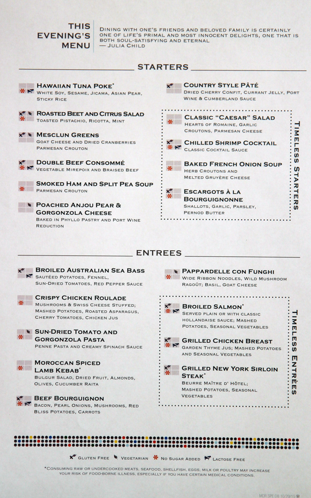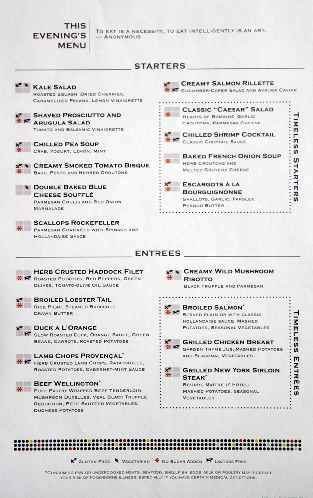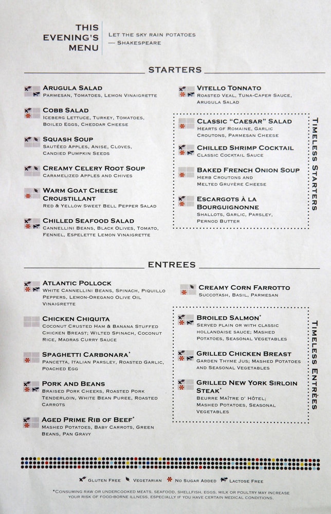Main Dining Room Dinner Menus