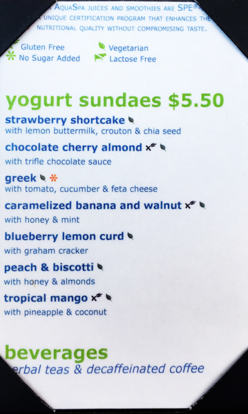AquaSpa Cafe Menu