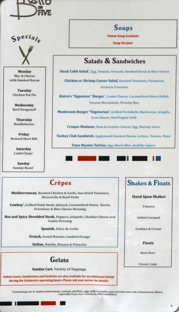 Oceanview Buffet Bar Menus