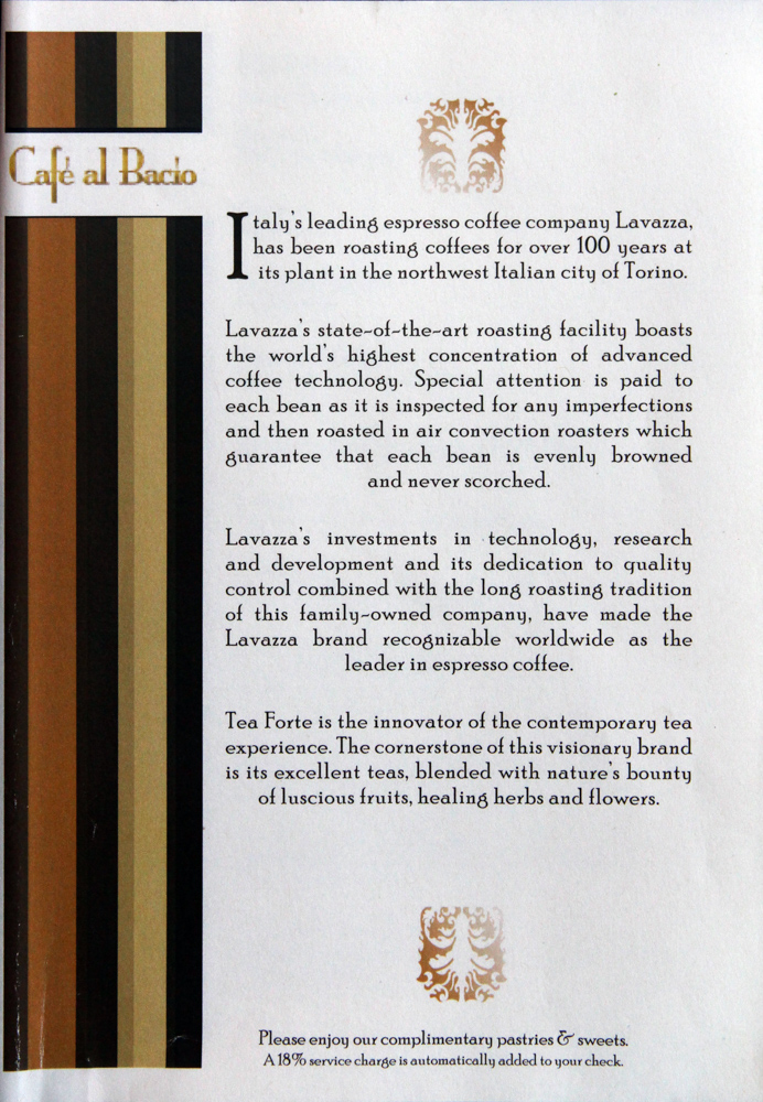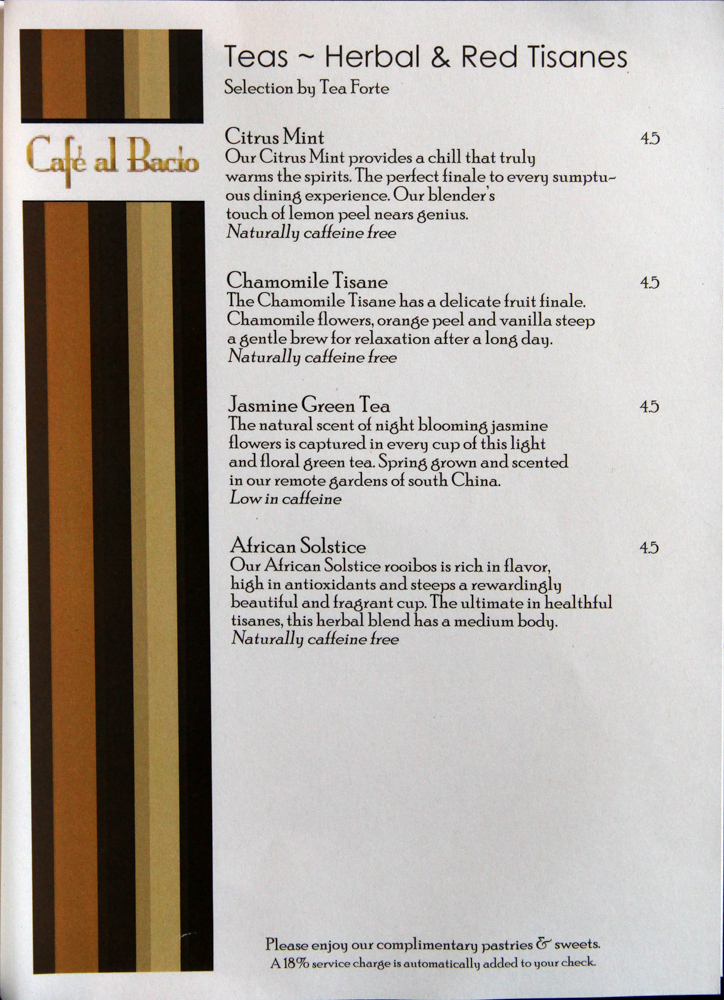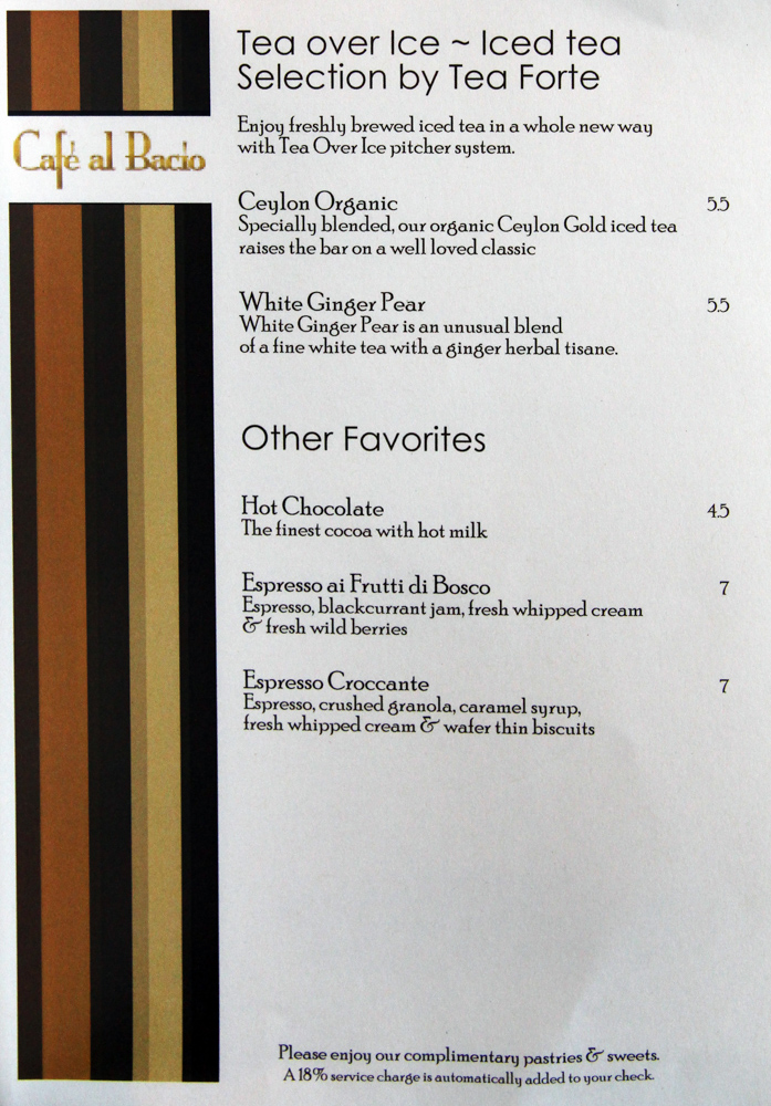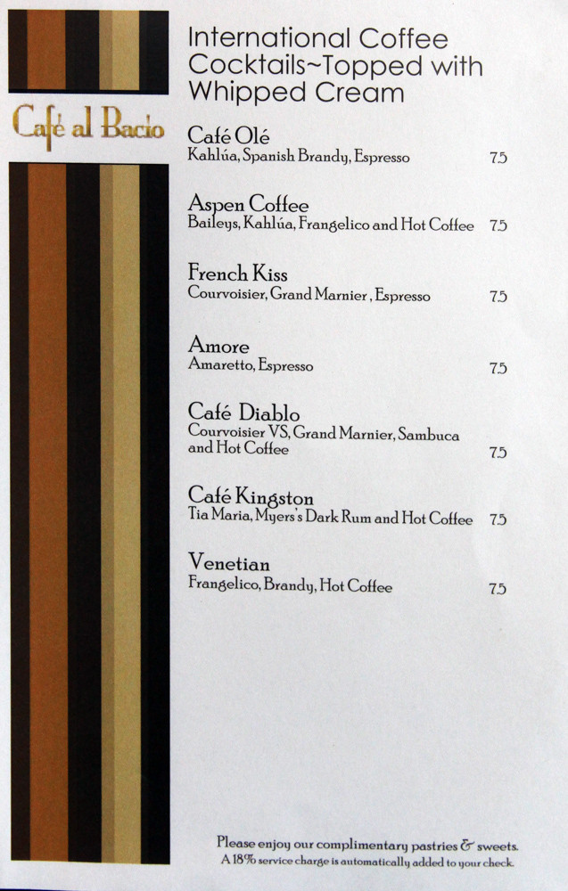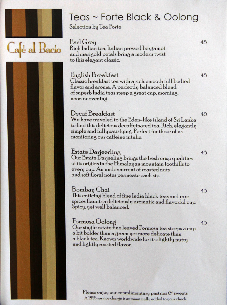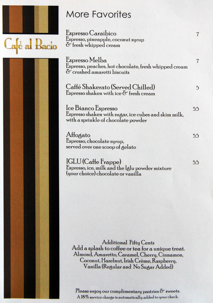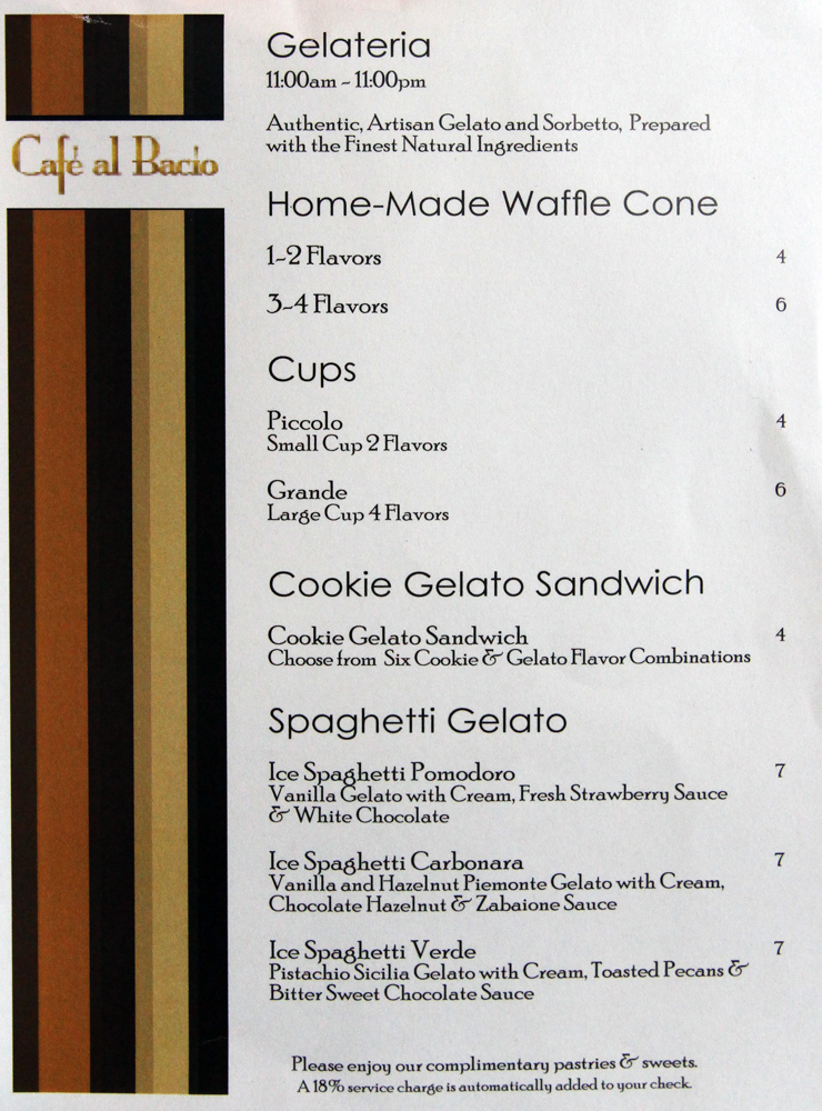 Cafe al Bacio & Gelateria Menu