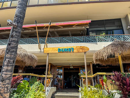 Duke’s is a very popular restaurant with seating inside the building and outside next to the beach.