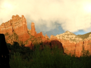Our last night in Sedona we ate at a Mexican restaurant called Javelina Cantina. From there Mike took some amazing shots of the sunset. It was cloudy, and the sun shining on the red rocks reflected into the clouds turning them blood red. That will be one of my many cherished memories of Sedona, Arizona.