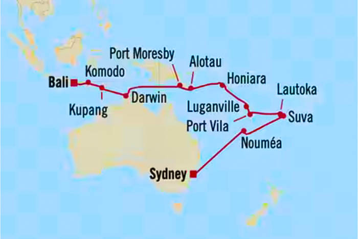 Page 3 – Ports of Call: Kupang, West Timor Indonesia; Darwin, Australia; Port Moresby, Papua New Guinea; Alotau, Papua New Guinea