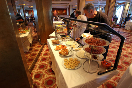 Oceanview Café - This buffet is of the old style rather than the island style that we prefer on Celebrity’s S Class ships. With it being a very long room, it required a lot of walking from one end to the other to see what was available. After a few days, we knew where different types of foods were; but it was still a hassle going from one end to the other to see what specific items they were serving. With the cold weather, people didn’t use the tables outside at the back of the restaurant, which made it even more difficult to find a table during prime time.