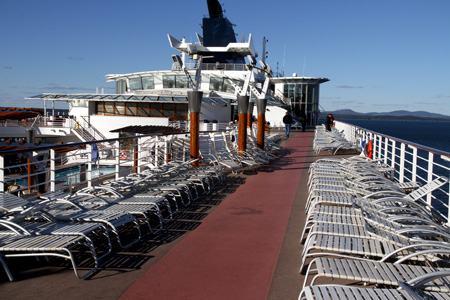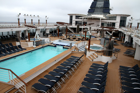 Pool Bar – With the colder weather, the pool bar and Mast Bar didn’t get much business. At least the pool bar was in a more protected area on deck 10. On a Caribbean or other warm weather cruise, there are many bartenders available for the crowds that are sunning themselves. For this cruise there was only one bartender most of the time and he was thrilled when someone ordered something from him. He appeared kind of bored since he was just standing around most of the time. I was able to get a photo on the one day when it was warmer and there were some customers.