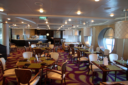 The Normandie Restaurant – Normadie is the Summit’s upscale restaurant with a $45 per person up charge. Based on how quickly Celebrity has been raising the prices of their specialty restaurants, the price could be higher when you go on your cruise. We normally like to go to Normandie or its counterpart Murano on the S Class ships; but we didn’t pursue it too much on this cruise. We were satisfied with the main dining room food. Frequently there are very good discounts available during the cruise and we had a two for one offer on the last night; but it came too late. The Normandie was also where the passengers who had reached the Elite level with Celebrity were able to have a light breakfast each morning. Since there were 600 Elite passengers on this cruise, there was a pretty good crowd in the Normandie each morning. My main interest was the free specialty coffees; but many also enjoyed the free Bloody Marys too.