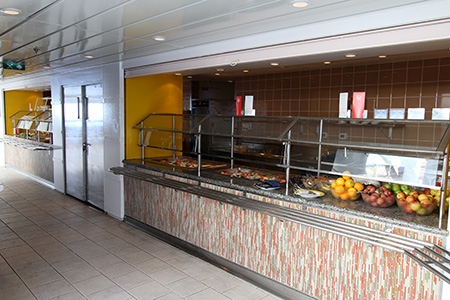 Pool Grill – With very tasty hamburgers and hot dogs, we visited there regularly rather than bothering with the buffet. Unlike the S Class ships, they didn’t make other kinds of sandwiches there. With it being cold outside, we didn’t have to wait too long for service, since the line wasn’t very long.