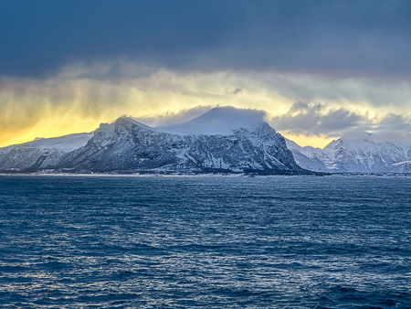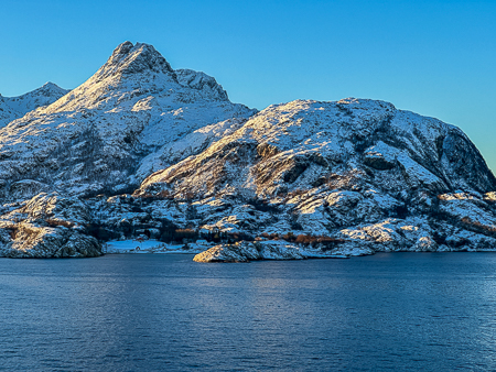 With the ship having four guest lecturers on board, there was normally one available if looking for something to do. My favorite thing to do was to watch the beautiful snow-covered mountains and small villages pass by. We were cruising inside passages much of the time, which provided smoother cruising and lots to see. When the sun came out it was time to get photos, but there wasn’t much sun on our first sea day. It was still beautiful.